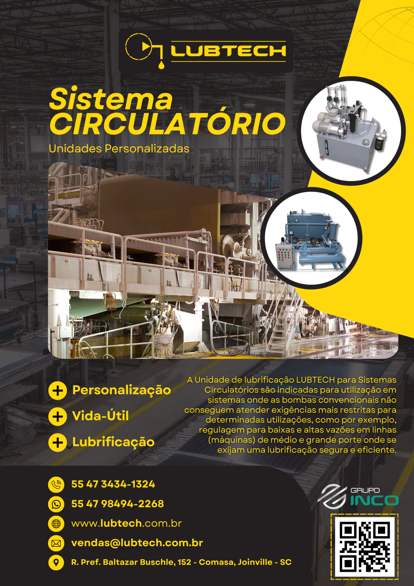 Fundada em 1998, a Lubtech é especialista em projetos, fornecimentos e instalações de equipamentos destinados à lubrificação centralizada, atendendo diversos setores industriais.